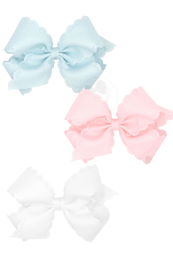 Small King Grosgrain Bow with Eyelet Flower Embossed Edges