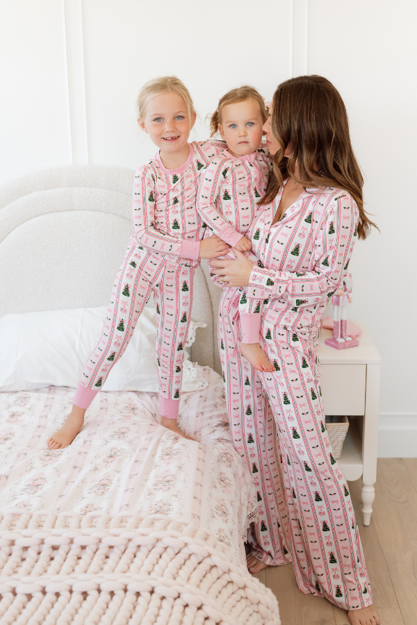 Cozy up in style with this cute set! Soft, stretchy and made with 95% viscose from bamboo and 5% spandex – these jammers are tough enough to handle a cold wash and tumble dry. Plus, with no flame retardants or inner tags, you can lounge in comfy-cozy confidence! Festive style without all the fuss? Yes, please!