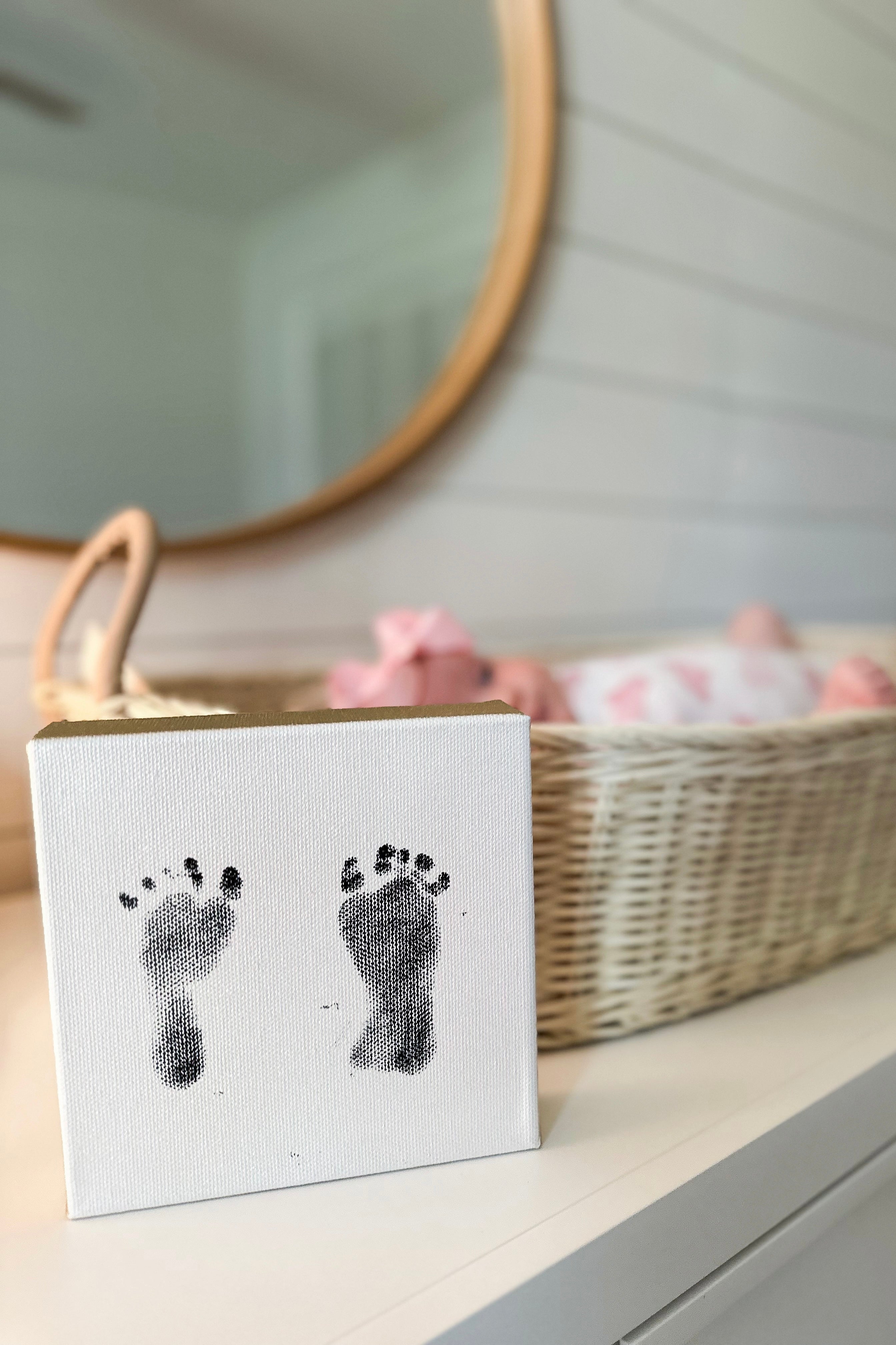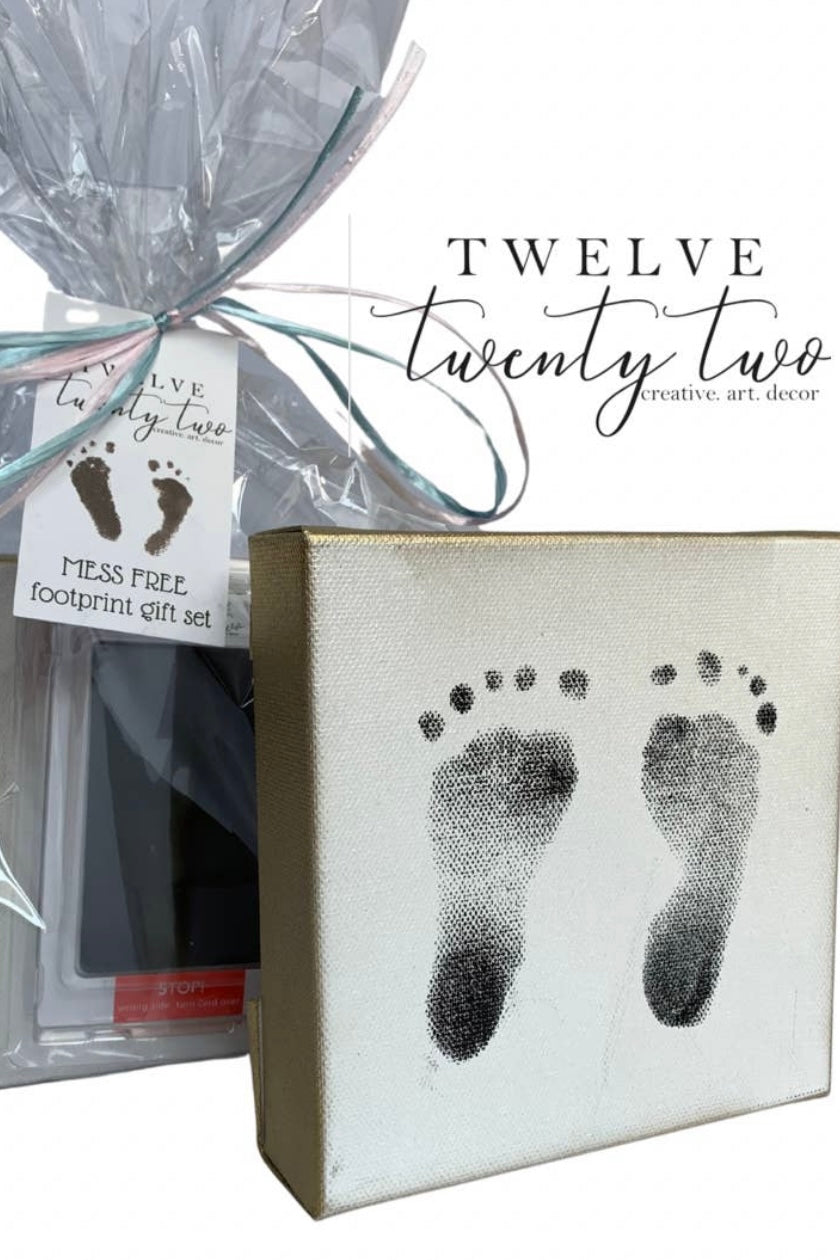 Create mess-free footprints in a 6x6 hand painted canvas using our mess-free ink pads. Capture those tiny footprints on a keepsake that will last forever.