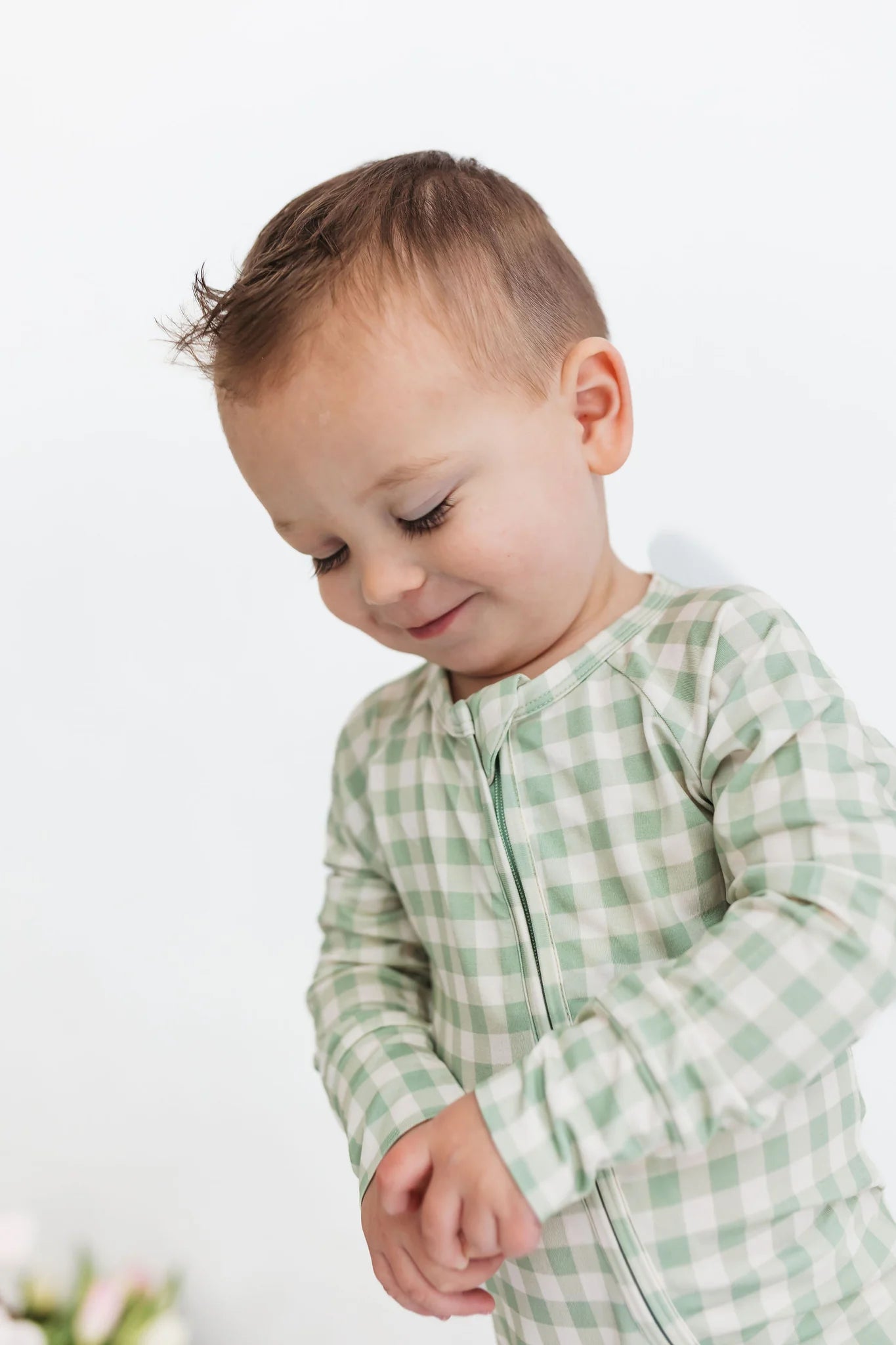 Green Gingham Zipper Romper