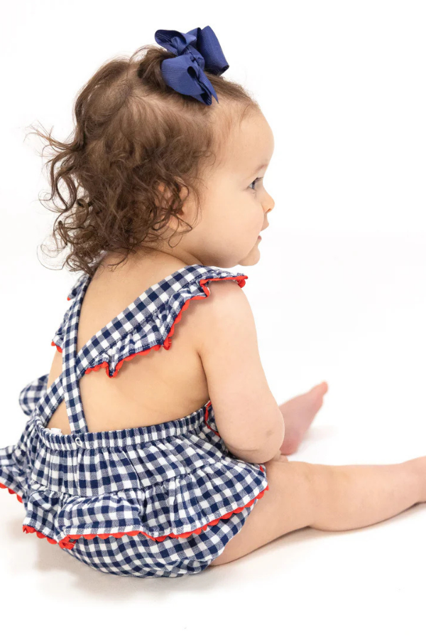 Navy Gingham Ric Rac Ruffle Sunsuit