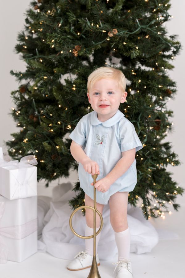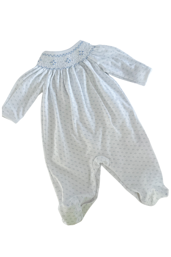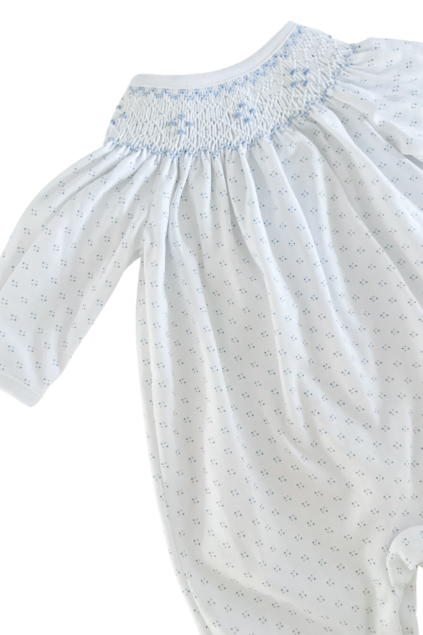 Blue Tiny Dots Hand Smocked Footie