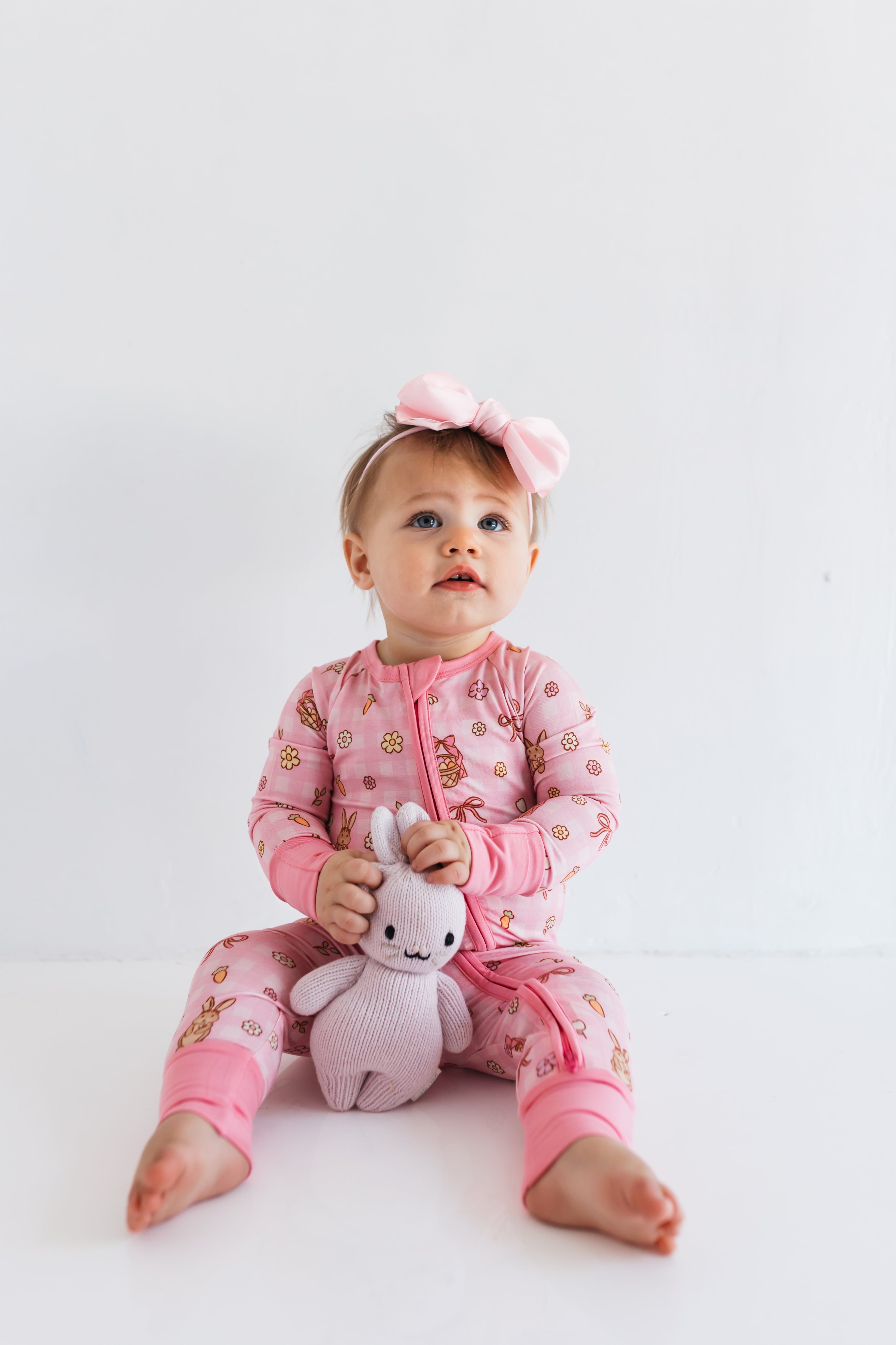 Pink Gingham Bunny Zipper Romper