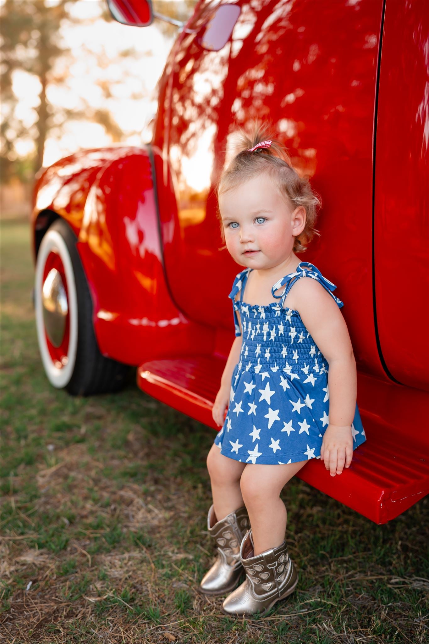 Navy Stars Smocked Twirl Romper