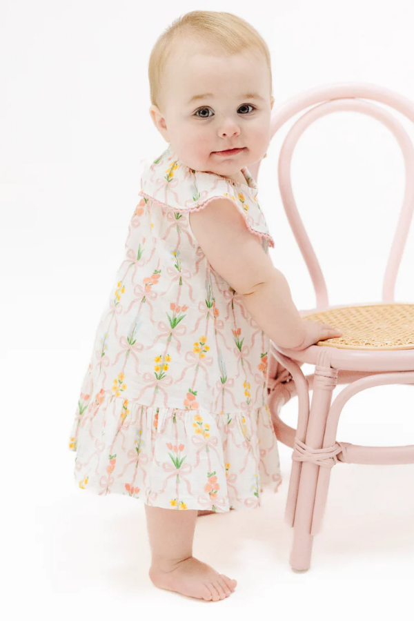 Ribbon Bouquets Neck Ruffle Dress