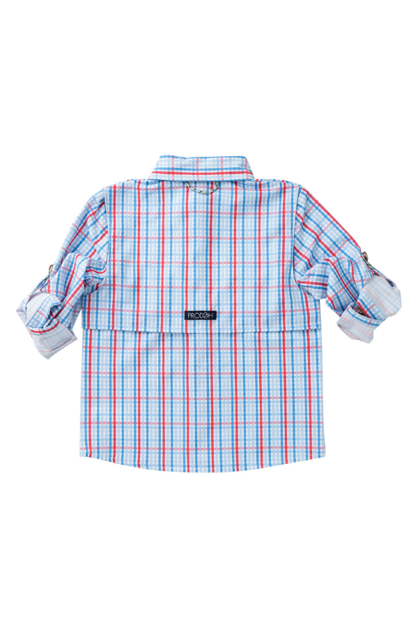 Long Sleeve Founders Kids Fishing Shirt | Patriotic Plaid