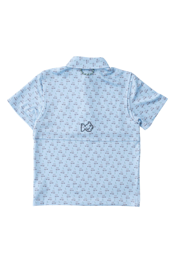 Pro Performance Fishing Tee Polo | Powder Blue Golf Cart Print